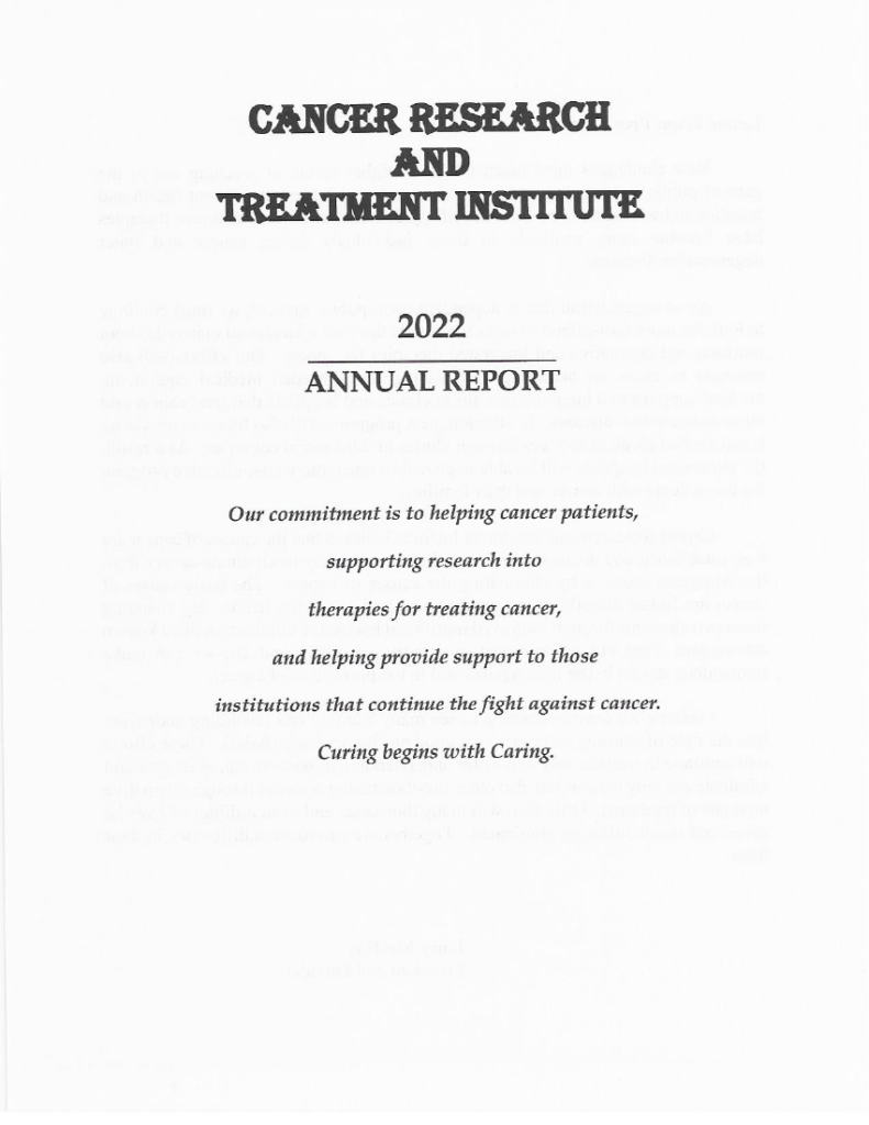 Cancer Research and Treatment Institute Annual Report of 2022